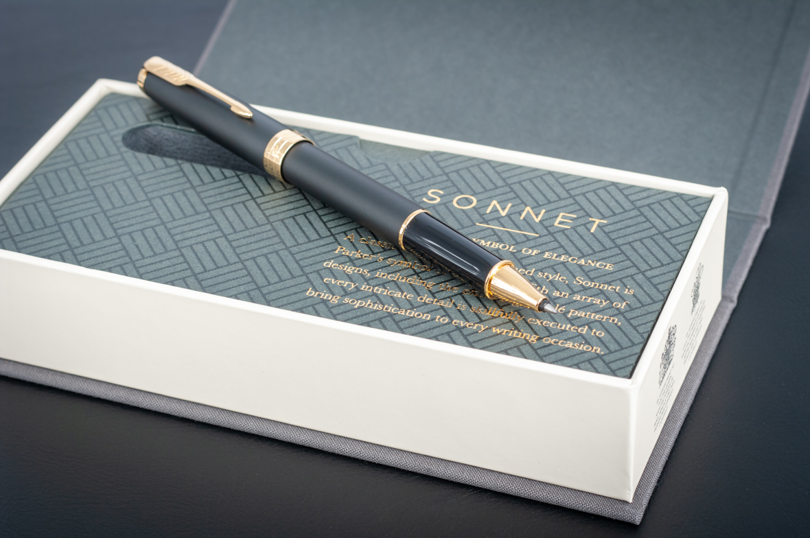 Ручка роллер Parker Sonnet Matte Black GT от официального дилера Parker в Пензе. Вы можете дополнительно заказать гравировку, которая подчеркнет Вашу оригинальность и придаст памятность статусному подарку. Все ручки Паркер поставляются в фирменном футляре.